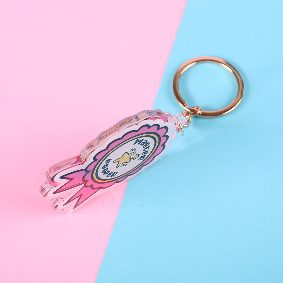 Double sided acrylic keychain with resin on both sides and gold ring
