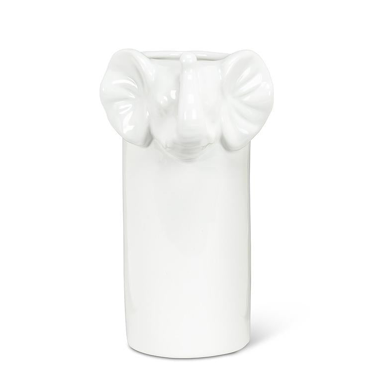 Our Vase with Elephant Face has detailed features like tusks, trunk, and ears. The 7.5"H vase captures the majesty of the elephant in a decorative form. Its glossy finish enhances the artistic rendering, making it a striking centerpiece or standalone piece of art that adds a touch of exotic elegance to any room.