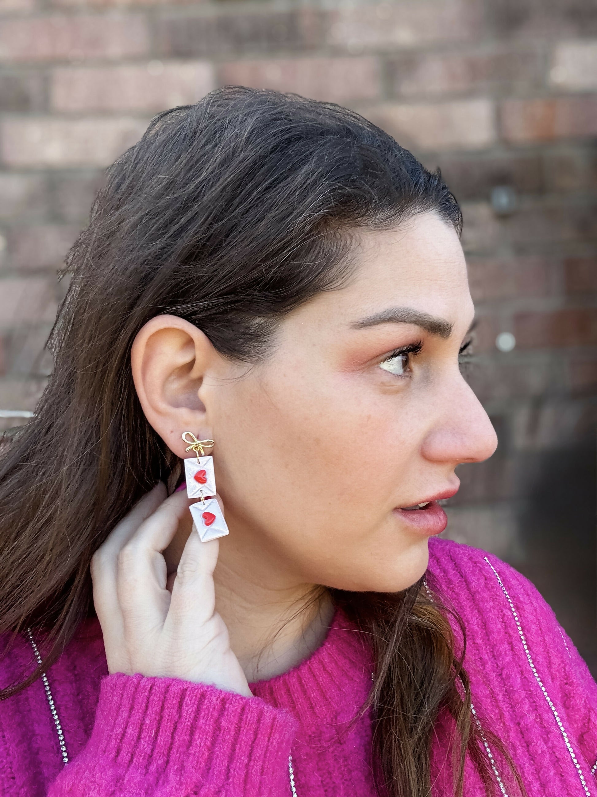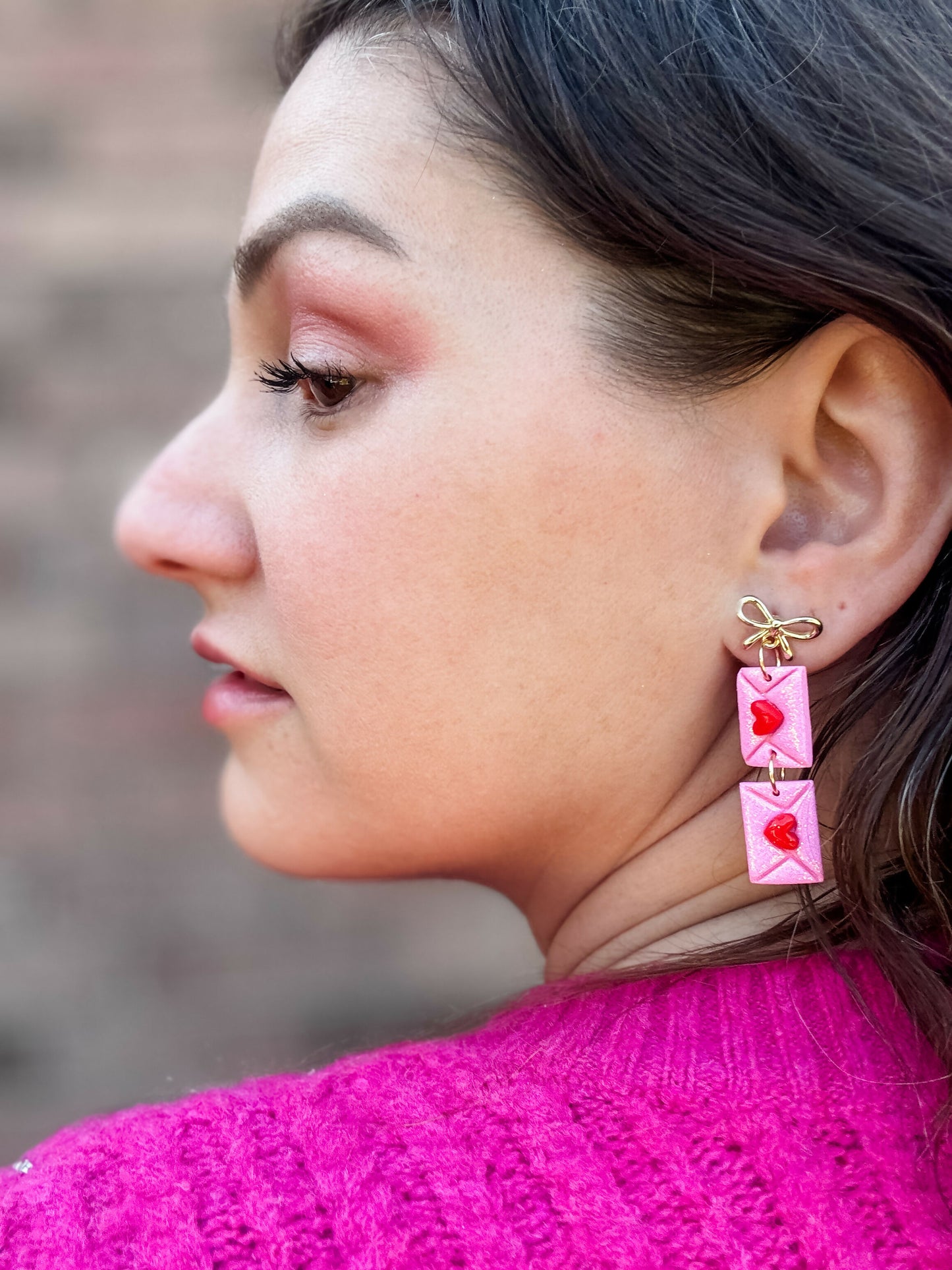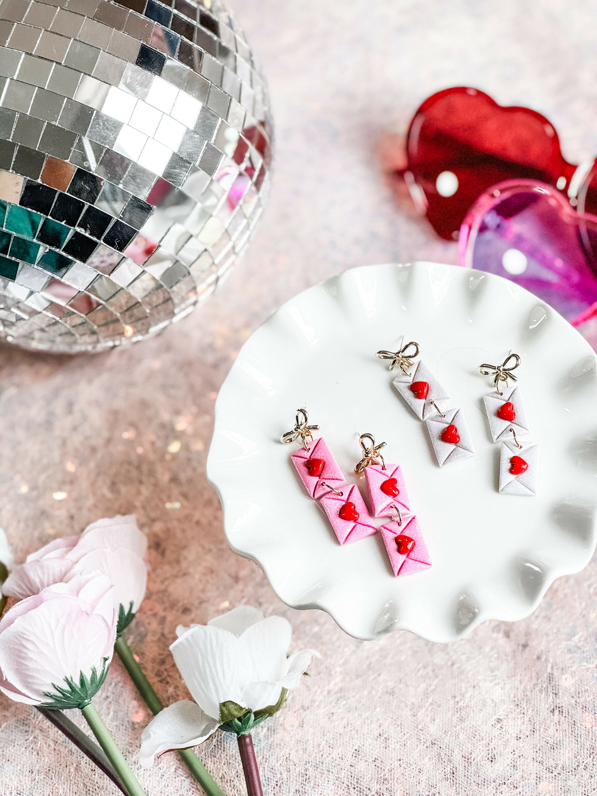 These love letter dangle earrings are the perfect way to say “I love you” without words. Each pair features delicate envelopes sealed with a bright red heart, available in soft pink or classic white. Designed to add a touch of romance and whimsy to your look, they’re perfect for Valentine’s Day, anniversaries, or any day you want to spread a little extra love.