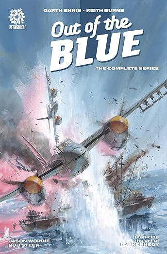 Writer Garth Ennis (Preacher, The Boys) and artist Keith Burns (War Stories) re-unite after the success of their series Johnny Red, presenting another tale of World War Two aerial combat – featuring skies black with flak and enemy fighters, nail-biting low-level action, and the dark humor of men whose lives can be snatched away at any second… Out of the Blue.