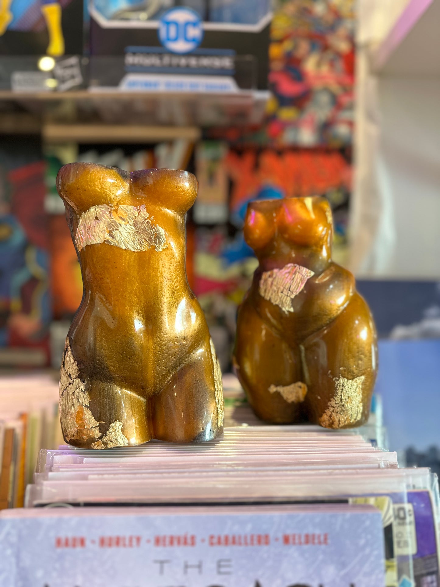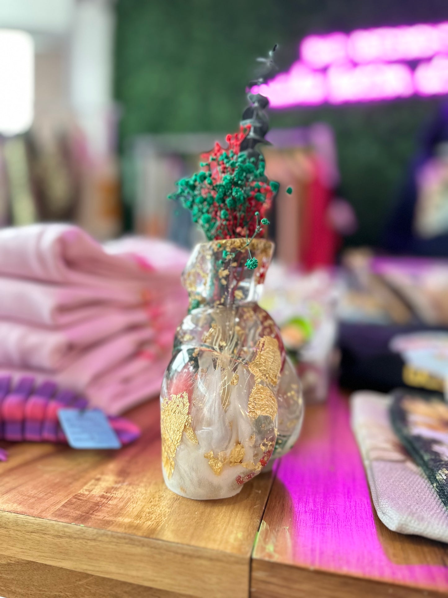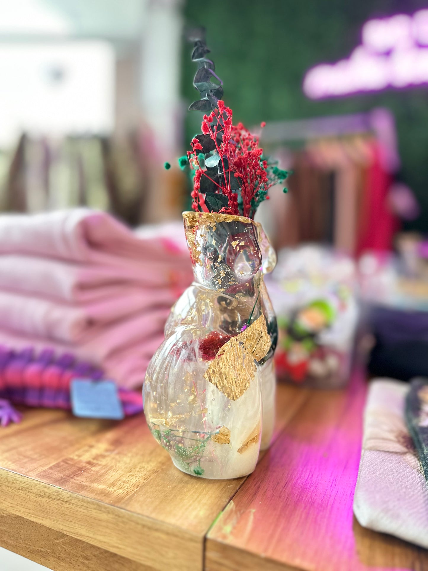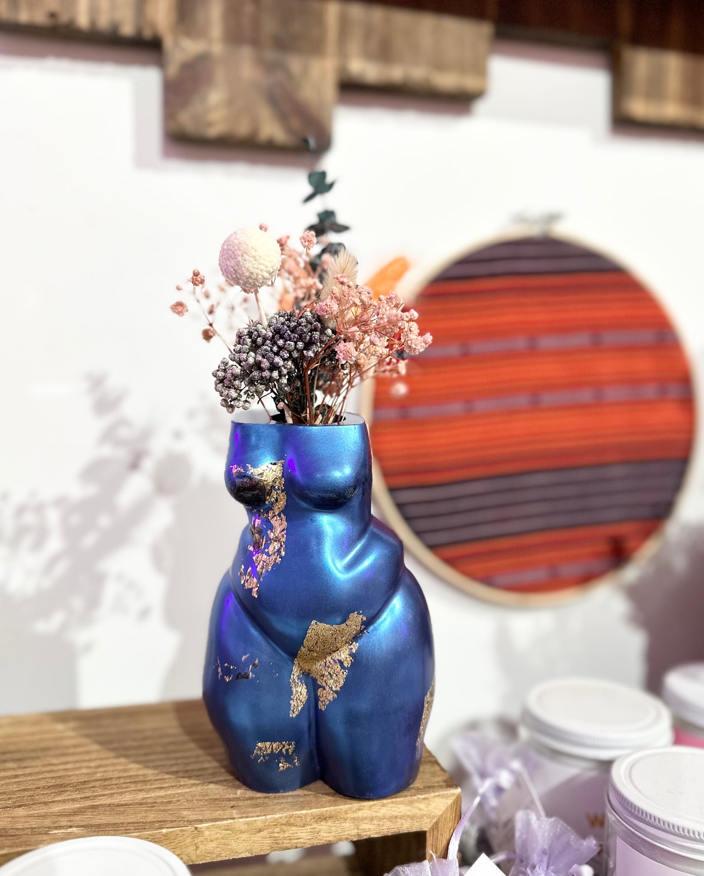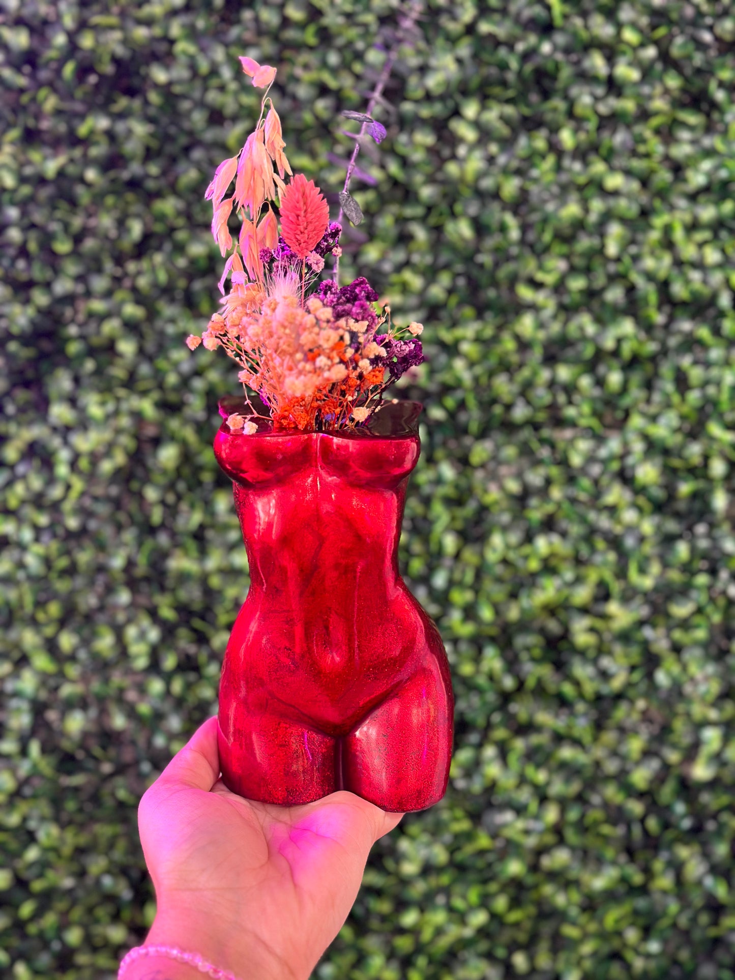 Draw attention to your room with these unique and empowering resin vases! Adorned with a dried flower arrangement and crafted with body-positive design elements, each one is made to order with 3-4 weeks of prep time. Add a little beauty, plus some attitude, to your decor. 💗
