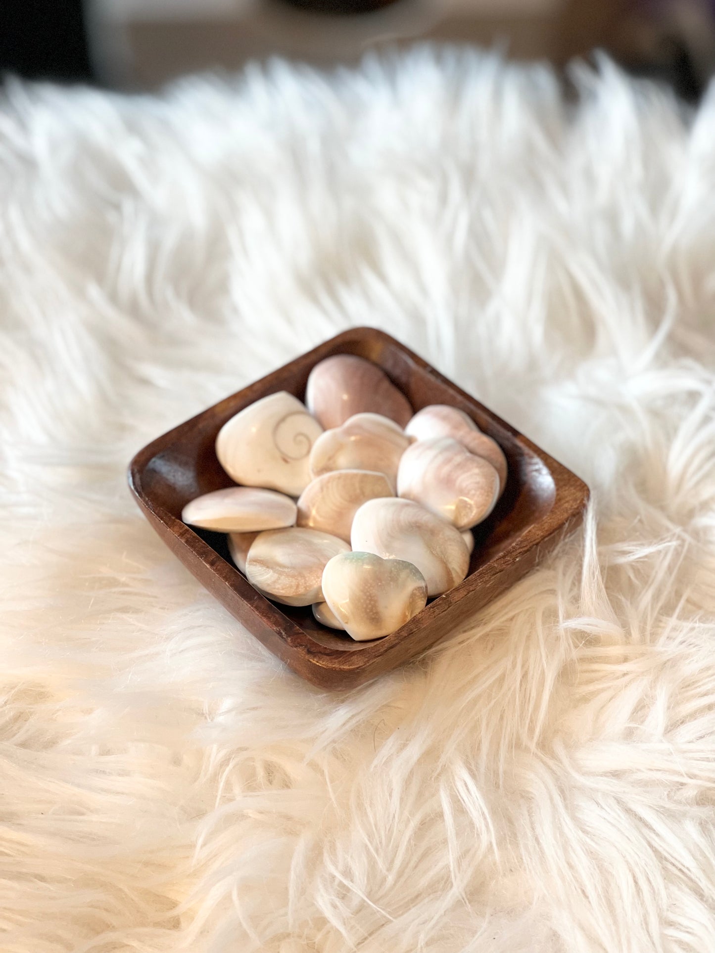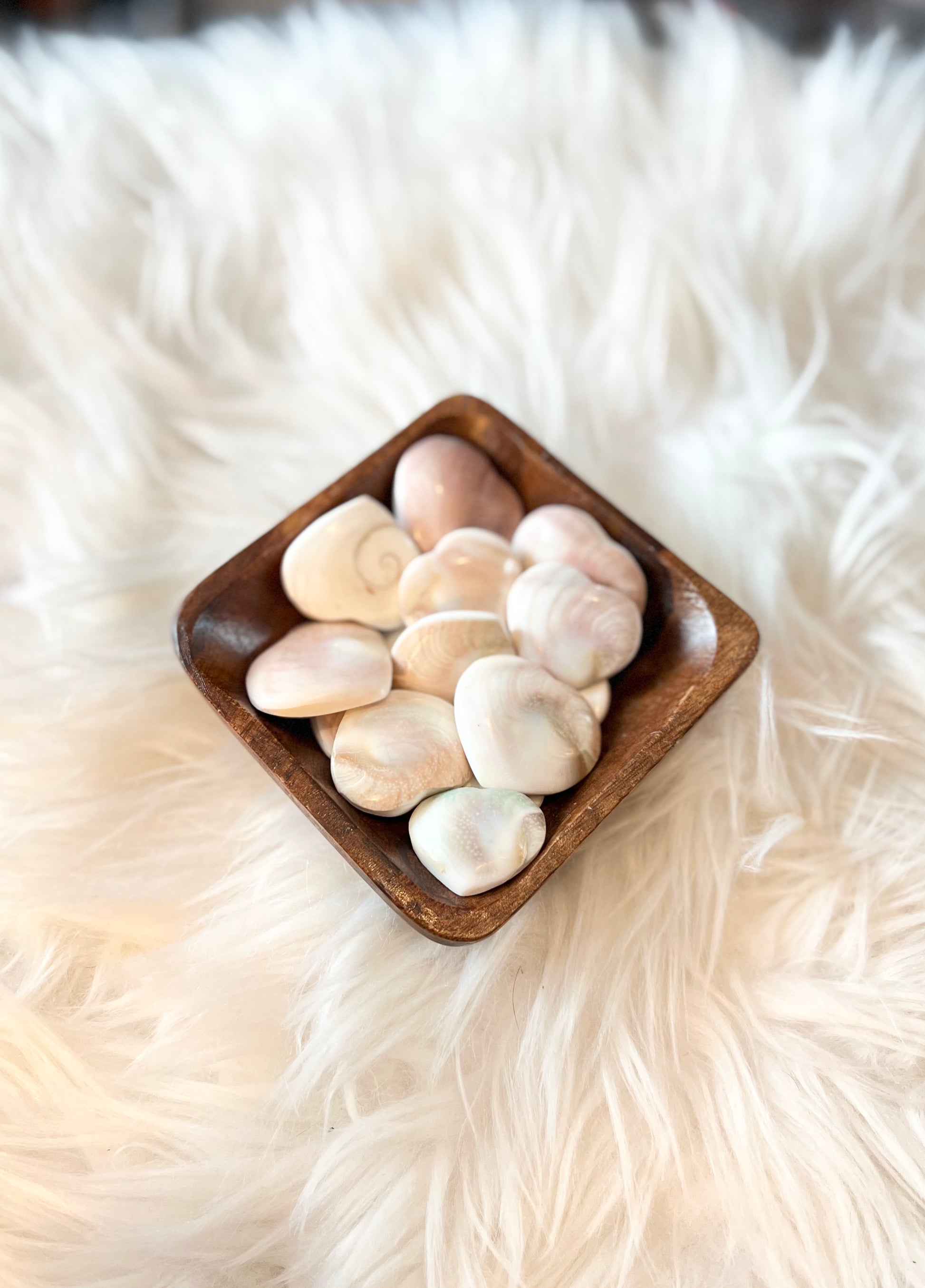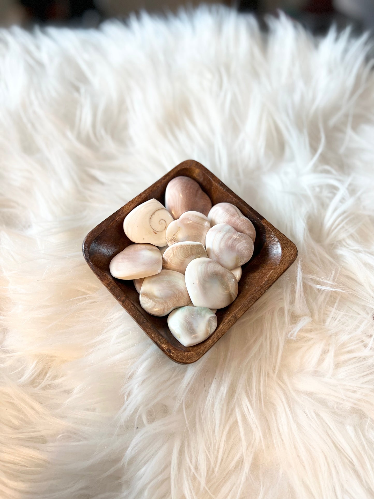 Shiva Shell (or Shiva’s Eye) is gently nurturing, acting as a seed for future generations. Some believe that whispering wisdom into this shell passes that knowledge along to children yet to be born. It represents the flow of life, blending spiritual knowledge with visualization and helping one reach new levels of consciousness. Meditating on the line of this shell helps one journey towards inner inspiration, finding joy, spontaneity, and reinvention along the way.
