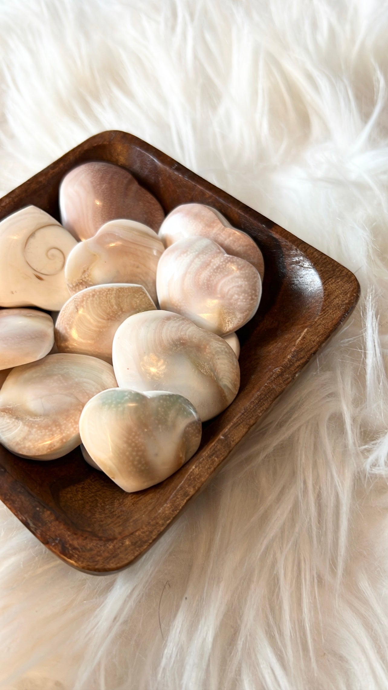 This listing is for one piece of shiva shell heart. The stone will be picked intuitively from our basket, cleansed and packed up for you. Each piece ranges in size from .5-1 inches.