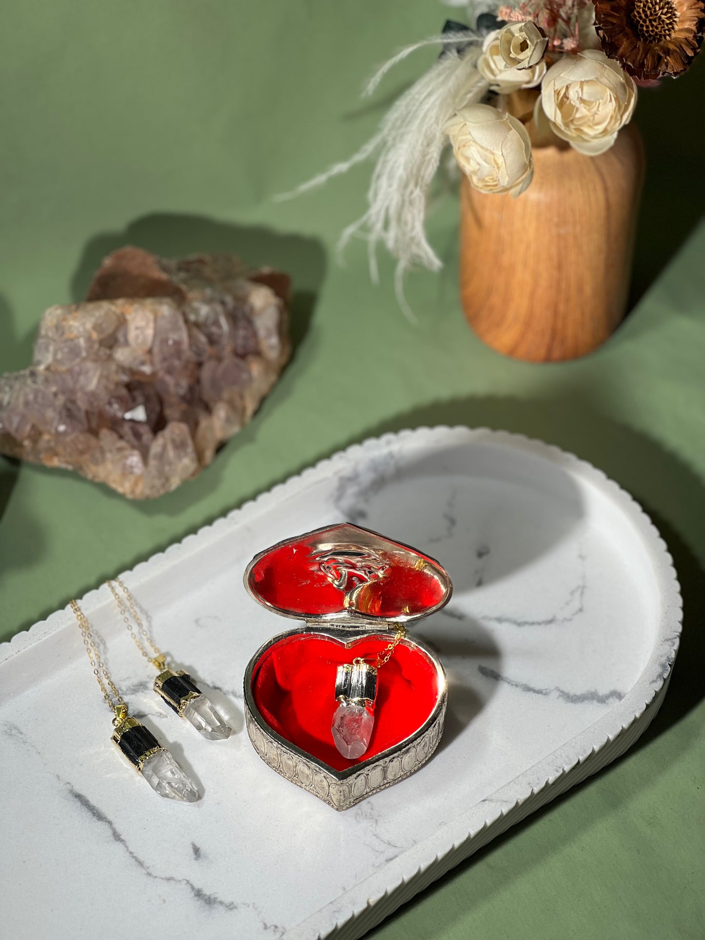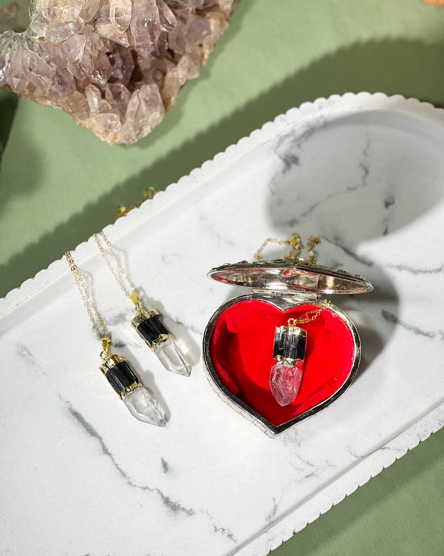 Tourmaline and clear quartz necklaces